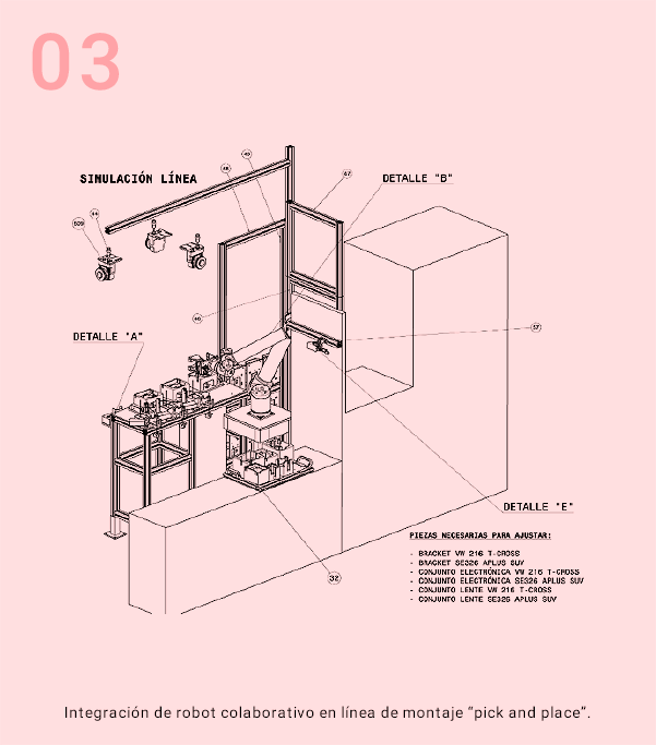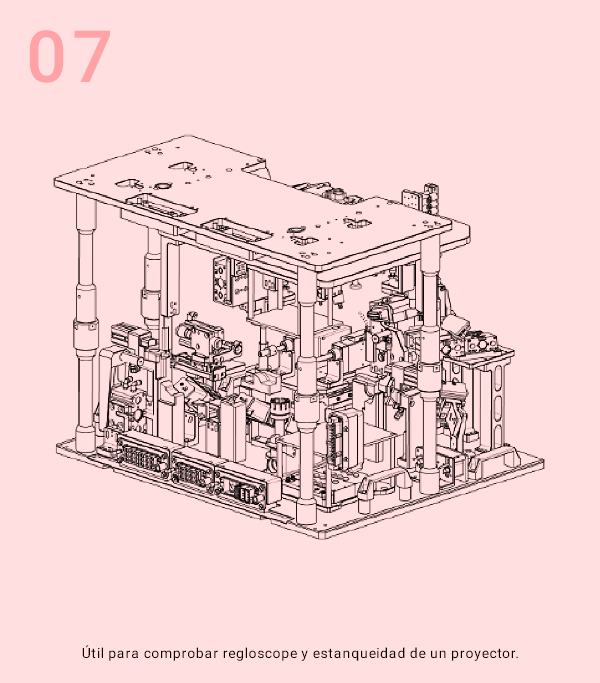Maquinaría y útiles de ensambles, atornillado, regloscope, estanqueidad, visión, montaje con robot, calibres de medición, vibración, pruebas climáticas, simulación vehículo etc.